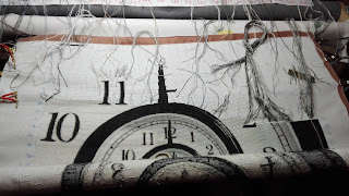 Wyjęłam 18 ct , które pozostało mi z innego zestawu i uruchomiłam ramkę/tamborek. Nie wyszywałam na nim od chwili zakupu krosna. Po prostu tam gdzie jest czerń użyje czarnej muliny.Nie jest łatwo. Praca tylko jedną ręką, druga trzyma więc sztywnieje po czasie. Muszę przyzwyczaić się. Może to będzie haft nocny w pracy? Nie chcę go znowu odłożyć bo znowu będzie to na lata. Tak zalega u mnie martwa natura- świeca i Czekoladowa zima, którym daleko do skończenia i okresowo jak te kruki zasiadają mi na karku. Obecnie niewiele na tamborku, nie cieszy mnie równość xxx choć to dopieo jeden kolor i drugi mieszany
